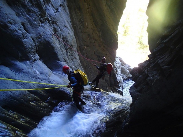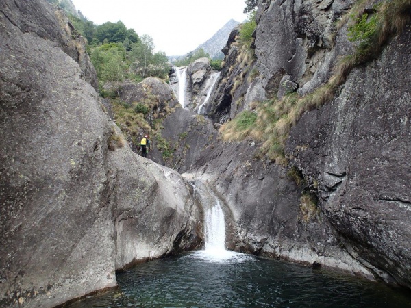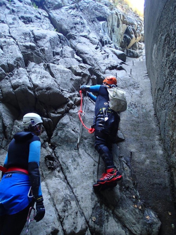 Dimanche, les six réunis se lancent dans le canyon de Rasiga supérieur, une jolie gorge profondément taillée dans le gneiss, comme les aime François. Le groupe sortira tardivement de ce canyon exigeant et ne regagnera le camping qu’à la nuit.