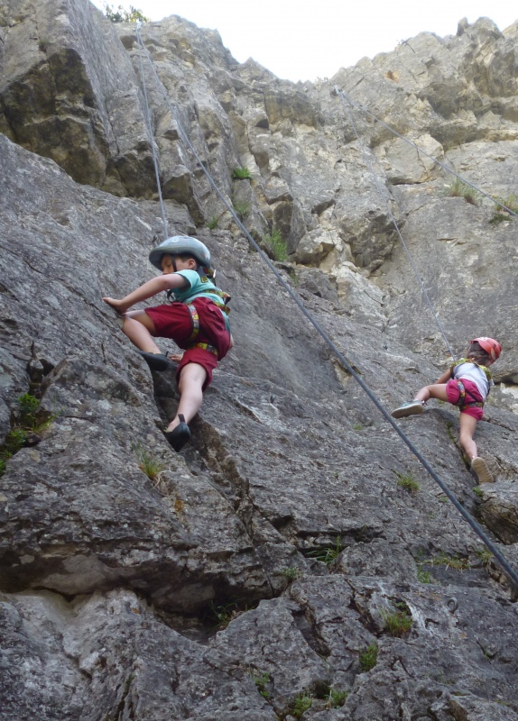 8 h, petit déjeuner : pléthore de quatre-quarts et brioches pour les enfants et leurs parents ; il en reste pour la sortie escalade de l’an prochain (prévenir le trésorier du CAF). Départ pour le rocher des Abeilles à Soyans. Plein soleil le matin : les enfants courageux grimpent, les encadrants bénéficient d’une vue magnifique en haut des voies, mais « il fait trop chaud ». Les rôles s’inversent, c’est aussi la sortie des (grands) enfants. Retour au camping pour le déjeuner, puis départ pour le site de grimpe initialdit de la Graville, près du camping, un site ombragé exposé nord : les grands enfants sont heureux.