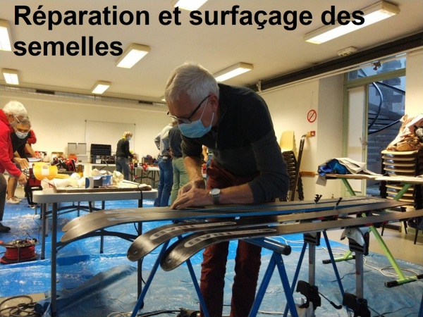 Toujours fidèles au poste, Arnaud et les deux Michel, bien aidés par quelques « redoublants », nous ont expliqué et montré comment réparer, entretenir les skis du Club et ceux des Adhérents.