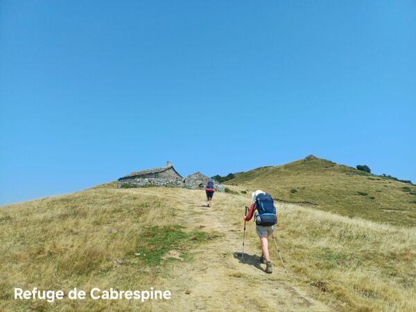 Notre objectif est d’aller bivouaquer sur la crête de Cabrespine à la pleine lune. Lors de la montée, notre attention se focalise sur les points d’eau. Le week-end est caniculaire ! Quelques filets d’eau dans les bois nous rassurent et c’est au buron de Cabrespine, auprès d’un troupeau de Salers méfiantes, que nous trouvons la source de vie.