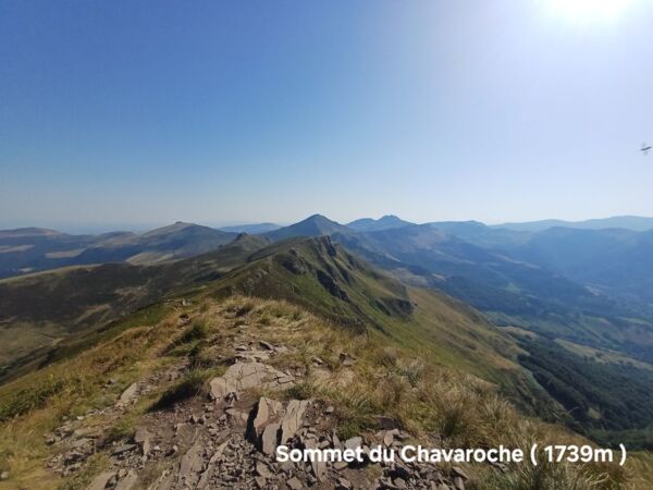 Il fait encore frais mais nous savons que la journée sera chaude et nous partons vers 8h en direction du puy de Chavaroche, puis du col du Redondet où nous avons caché des bouteilles d’eau dans les myrtilliers.