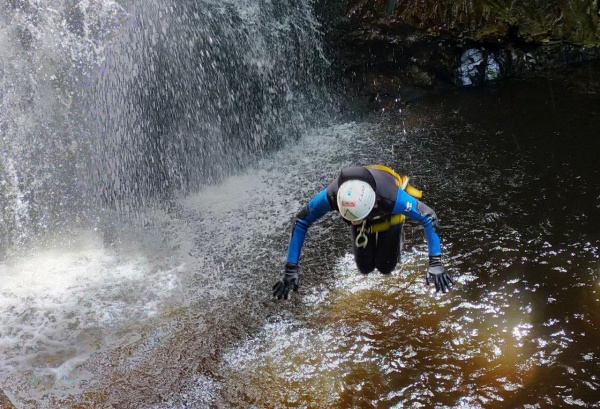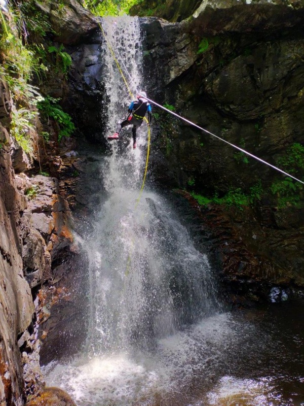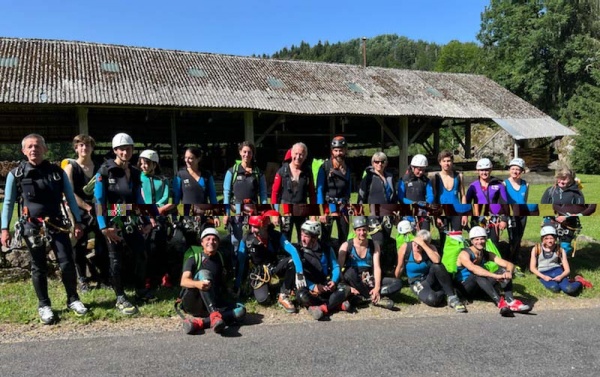 C’est à 8h qu'est le départ pour quatre voitures, direction... la fraîcheur. Une vingtaine de membres du club alpin et d’ados de l’école d’aventure se retrouvent vers 9h30 prêts à parcourir ces belles cascades ! Combinaisons, casques, chaussures enfilées et c’est parti pour quelques dizaines de mètres de marche avant d’entamer les premiers sauts pour se mettre en jambe. La température de l’eau est digne des Caraïbes (merci la combinaison). Tout le monde s’essaie aux sauts avec plus ou moins d’hésitations sur trois hauteurs différentes : 2 m, 5 m et 7 m. Le toboggan et le rappel font aussi partie du jeu. C’est sans voir passer le temps et après 1h30 au même endroit que nous commençons à avancer dans le canyon.