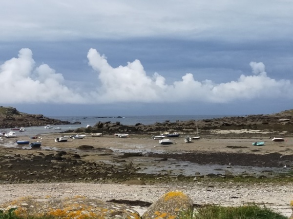 Jour 1. Après un long voyage (13h30 pour Maria partie la première), un gîte pieds dans l’eau nous attend à Portsall (commune de Ploudalmézeau) sous le soleil.