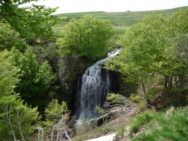 Départ de Courbanges, par le GR30 et les plaines des moutons, direction Besse, où on se ravitaille au marché : besoin de deux pique-niques pour finir notre tour. On aura même le temps de prendre menthe à l’eau et café en terrasse. Puis on grimpe en direction du Lac Pavin : Cyril et Stéphane en profiteront au passage pour gravir le puy de Pertuyzat. On longe le puy de Montchal, couleurs locales – pont de Clamouze, un p’tit coup de blues, cascade de la Barthe, si Roland nous voyait…