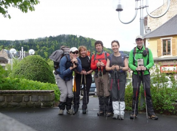 Rendez-vous à La Bourboule à 9h00 : crachin breton. Réaction bretonne : on entre dans un petit bar à l’air sympathique. On est décontracté mais on sait qu’il va falloir marcher. Double expresso de rigueur. 10h00 : le soleil se lève, photos classiques de départ. 10h05 : c’est parti !