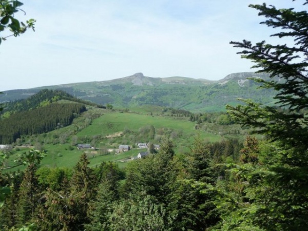 On dit au revoir à Emilie. On passe par le village de La Morangie, puis les bois intimistes nous conduisent à une Auvergne marécageuse, qui met nos chaussures Goretex® à l’épreuve. Mais qu’est-ce que c’est que ce cirque ? Celui de la Fontaine Salée. On ira pique-niquer au Roc de Courlande (1496 m) : vue imprenable sur lae Cantal au sud et sur le Sancy au nord-est. A l’ouest, rien de nouveau, la Corrèze nous observe. Nous attendons le changement (rien à voir avec la Corrèze aux landes lymphatiques et mollassonnes), le changement est celui du cap : nous traversons Chastreix du regard et partons à point pour atteindre le Plateau de Bozat.