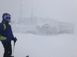 Face à un vent soufflant avec des rafales à plus de 100 km/h et des températures très négatives, Michel et Paul ont la bonne idée de nous emmener en sécurité à Chambon-des-Neiges. Inventaire du matériel avant de chausser, tout y est !