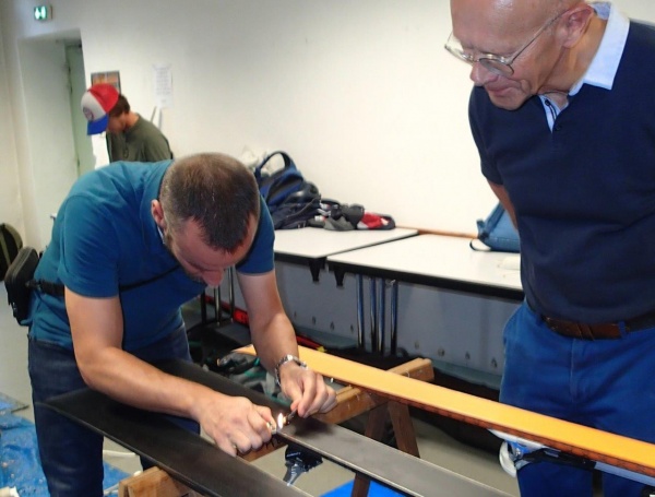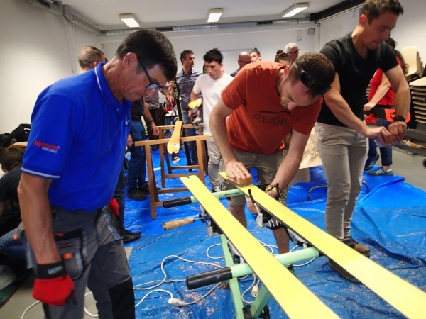 J’entre dans la salle avec ma paire de skis, perdue au milieu des nombreux ateliers. Par où commencer ? Je n'y connais rien ! Pas de soucis ! Les débutants apprennent auprès des plus expérimentés dans une ambiance joyeuse et conviviale. Un peu de cire et un briquet, les trous sont rebouchés.