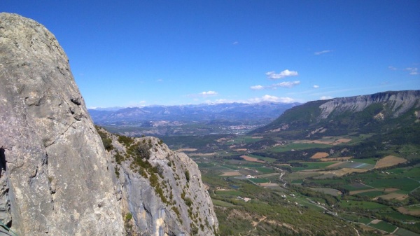 Troisième jour, nous avons perdu deux combattants qui préfèrent partir en excursion vers le mont Michel et les côtes qui entourent Orpierre. Les quatre fantastiques vont se faire une petite ascension de quatre longueurs de 120 m. La petite marche d'approche se fait longue, car l'ascension d'hier est encore dans les jambes. Choix de la voie, composition des deux couples, et la nouvelle ascension démarre, mais cette fois-ci sous les nuages. L'Adrech ne résistera pas à la détermination des hommes, mais les fera lutter car l'ascension durera près de quatre heures, alternant des longueurs en adhérence, polies ou accrochantes avec des bonnes prises de pied. L'arrivée au sommet se fait sous une bourrasque de vent qui presse les cordées à s'acheminer rapidement au point de descente en rappel par la face nord de l'Adrech, une descente en fil d'araignée de 32 m à l'abri du vent, et atterrissage dans la verdure. Nous pique-niquons au pied des voies. Retour au gîte pour nous changer, et nous passons le reste de l'après-midi à visiter Orpierre et admirer le panorama ; bien sûr, entre-temps, nos deux compagnons nous ont retrouvés pour participer à cette visite. L'heure du couchage sera encore plus tôt que la veille, même pour les couche-tard, preuve que l'ascension laisse des traces.