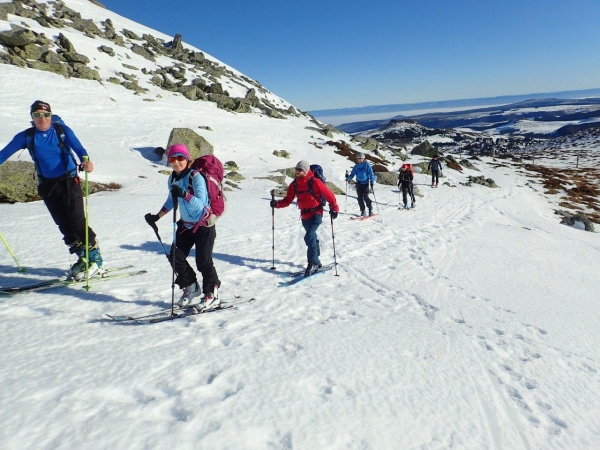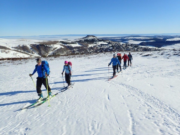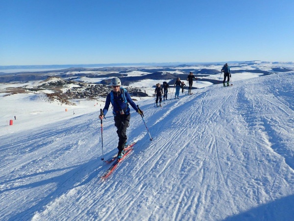 Après quelques heures d’exercices de recherche de victimes d’avalanche, une montée tranquille au puy de Paillaret, un pique-nique au soleil avant la descente jusqu’à la lisière de la forêt de Landrode, vers les pistes de ski de fond, c’est une chaude remontée par le col du Couhay qui nous a conduits au puy Ferrand. Une belle occasion de vérifier le réglage de nos fixations, de reprendre les automatismes de manipulation des peaux, sans stress, dans la bonne humeur, chacun à son rythme. Une rencontre avec un couple de skieurs qui devrait rejoindre le rang des cafistes. Un parcours plus ou moins long selon les groupes. Les plus courageux ont fait le tour complet du Paillaret. Presque mille mètres de dénivelé positif pour tous. Du positif pour chacun !