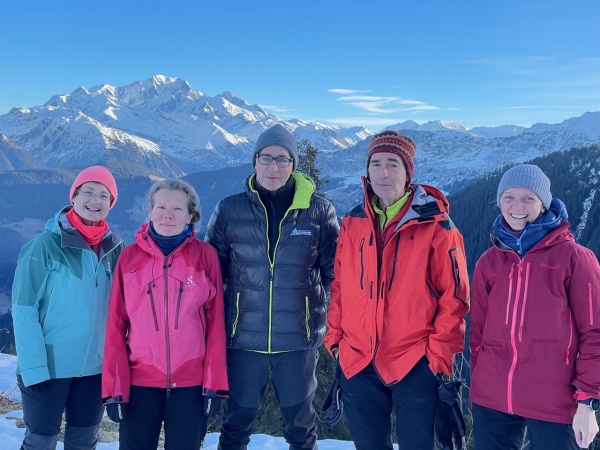 Sophie, Emily, Gérard, Thierry et Joanna (devant le Mont Blanc)