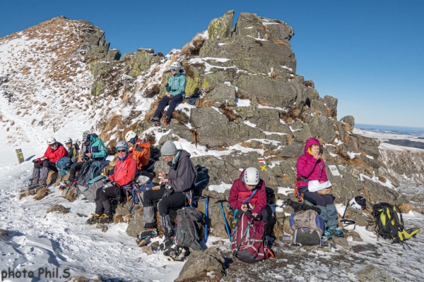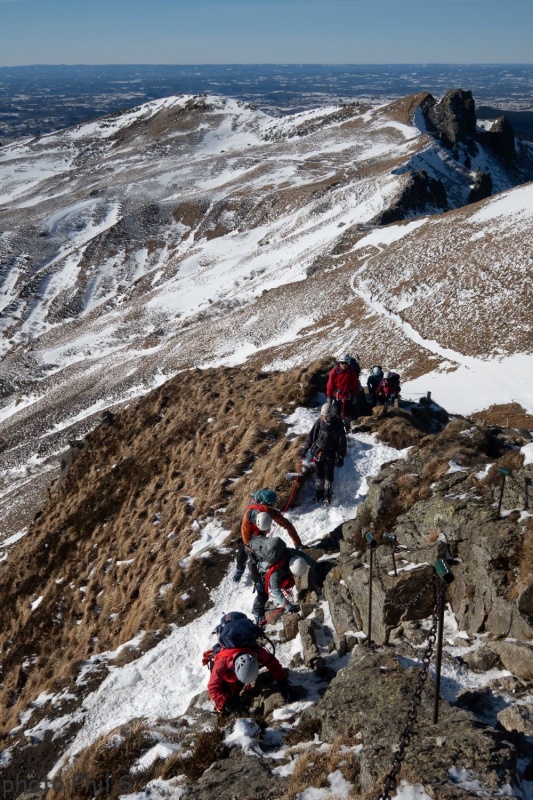 Une journée fraiche (- 15°C affichés en passant près du Guéry…) et ensoleillée mais idéale pour la randonnée alpine pour évoluer en situation réelle.