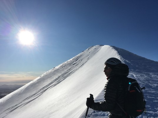 Montée au soleil, arrivée dans le vent qui soulève la fine couche de neige, et descente royale !!! Légère remontée vers le haut de la Perdrix, et c’est la descente finale sur les pistes ravagées, qui nous laisse songeurs quant au fait de payer pour skier sur les cailloux…