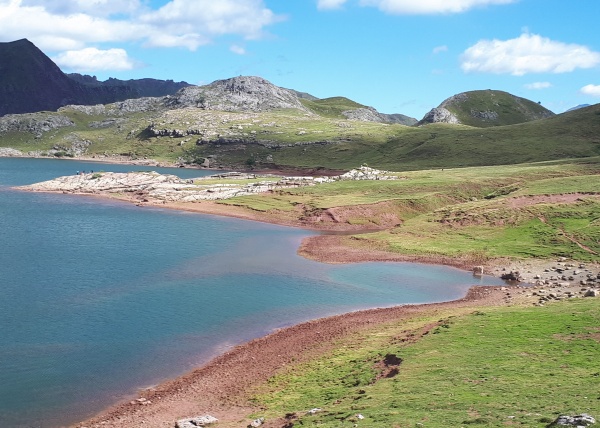 Une longue et belle étape dans des paysages magnifiques. On remonte la Vallée de Los Sarrios avant d’arriver au lac d’Estaëns, un endroit idéal pour pique-niquer - dommage, il est un peu tôt... Plus loin, un autre lac nous attend, celui de Ibón Estanés, certaines plages sont occupées par le bétail qui vient se rafraîchir et faire comme nous une petite pause pour admirer le paysage... Plus loin, on aperçoit le col du Somport avec les aménagements des stations de ski du Somport en France et de Candanchú en Espagne. Le chemin passe sur les éboulis au pied des falaises du cirque d’Aspe avant d’arriver sur la ligne de frontière jalonnée par de belles bornes en pierres. L’auberge d’Aysa, à 1680 m, se trouve en Espagne, à 100 m de la frontière au col du Somport.