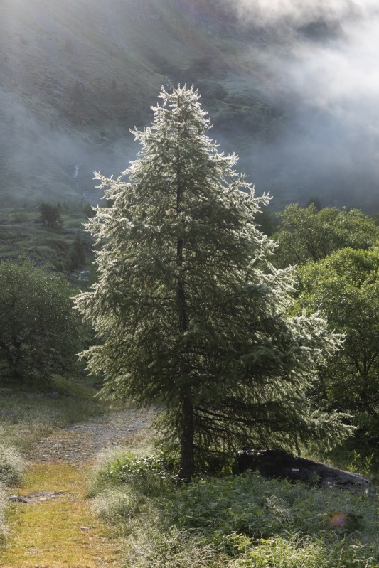 Plus bas, la riche végétation du Champsaur alimenta moult palabres pacifiques. Discernant l’églantier de l’aubépine, admirant l’incarnat du rhododendron, s’esbaudissant de l’asphodèle chevelue et de la gentiane bleutée, la troupe s’en fut sur le sentier, à peine distraite par Monsieur Patou, pas tout le temps accueillant mais par tout temps bretteur.