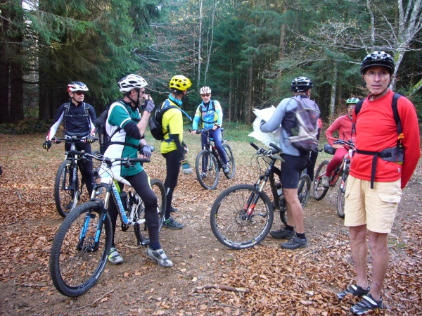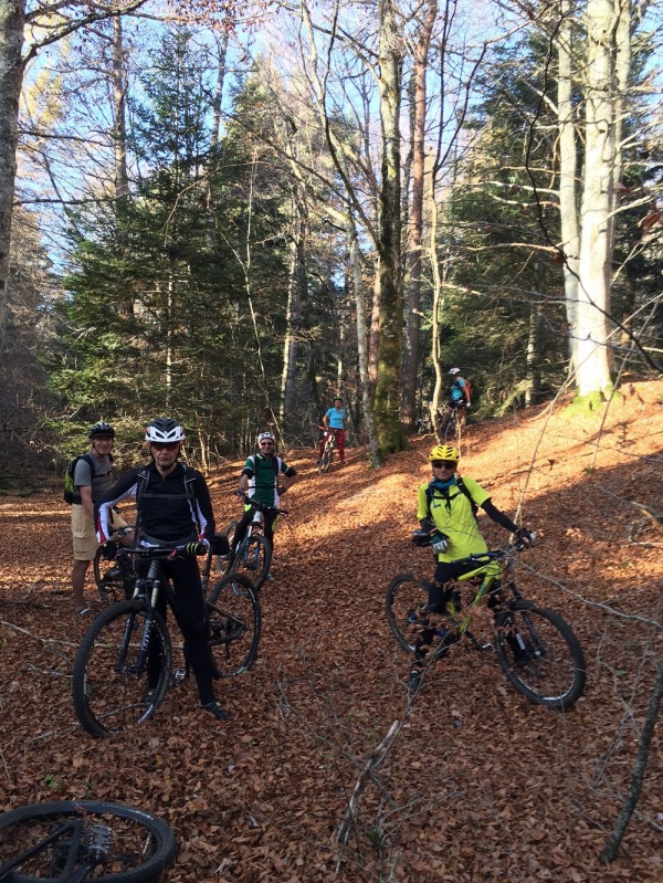 C’est reparti, après une petite heure de pause, pour une partie de descentes techniques (pour moi, pour le moins) en sous-bois. Je me paye deux ou trois gamelles, heureusement amorties par un épais tapis de très belles feuilles mortes (nous nous sommes toisées du regard, elles et moi), et nous voilà à quelques encablures de Fontfreyde. C’est la fin de notre périple, après une quarantaine de kilomètres, je suppose, les feuilles mortes ayant gardé mon compteur en otage.