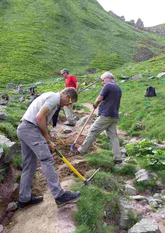 Pilotés par Solène, garde nature, nous remettrons en état les renvois d'eau sur le sentier qui mène au sommet du Puy de l'Angle.
