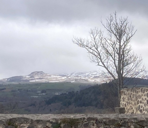 Nous partons sous un ciel menaçant vers les grottes historiques de Jonas, puis nous crapahutons en direction du pic de Saint-Pierre qui nous offre un panorama à 360°, notamment sur le Sancy déneigé…