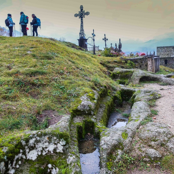 Après être partis comme prévu à 9 h, le ciel sec a bien voulu nous accompagner 30 mn, le temps d'aller re-re-revisiter le cimetière de St Floret.