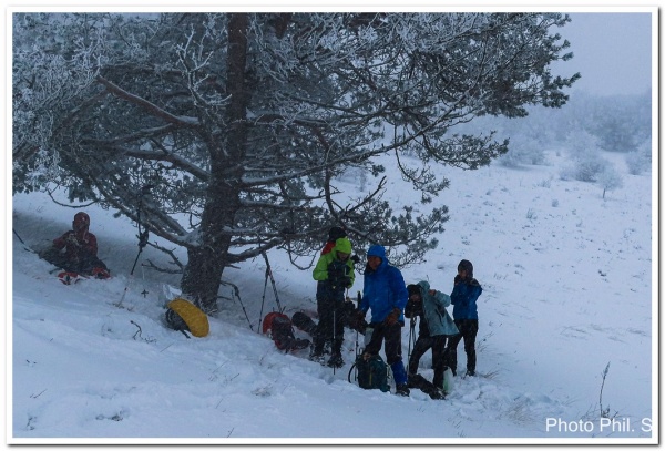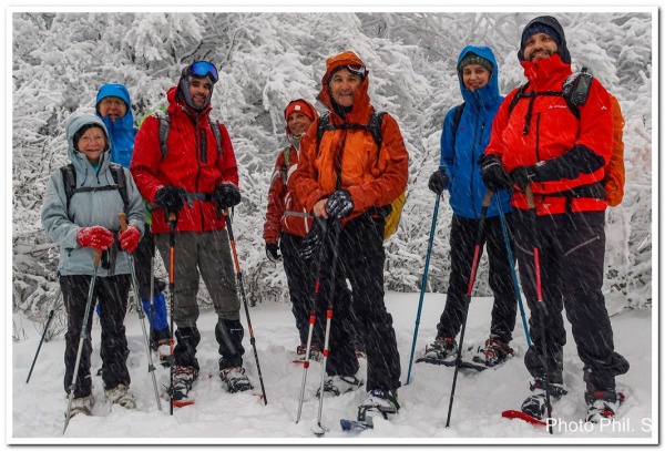 D'entrée, ça se corse un peu car Mirko, qui vient découvrir la rando raquette, est mal chaussé. Ses pieds sont mouillés et transis au bout de 500 m. Par une sage décision, il rentre à sa voiture garée au col. Ce sera une expérience à positiver pour le prochain essai.