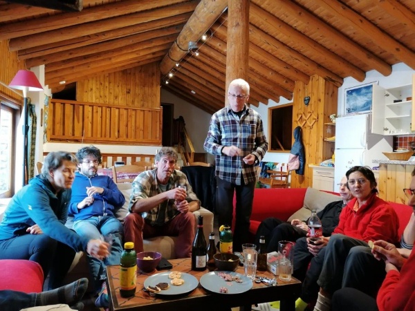 Nous partons donc pour la plupart après le déjeuner mercredi, direction Val d'Isère, pour prendre nos quartiers dans de superbes gîtes réservés par Albert. Bonne nouvelle, la neige est au rendez-vous, et les sorties s'annoncent pour la plupart possibles en partant skis aux pieds. Le dîner préparé (poulet basquaise, rien que ça) nous permet de prendre des forces pour le lendemain.