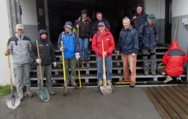 A Super-Besse, Guillaume Trapenat, garde de la Réserve naturelle, Bernard Pauty et Mélina Tailleur, gardes nature de la zone Natura 2000, nous rejoignent. Ils ont tout un stock de pelles et de pioches en complément de celles que nous avons nous-mêmes apportées.