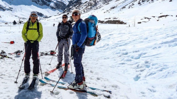 Lundi, toujours avec un beau soleil, nous réalisons une belle boucle en passant par le col des Roches, la pointe de la Met et le col des Fours pour rejoindre directement le refuge par une descente très agréable. La gardienne est très sympathique mais le Fond des Fours est un peu exigu, les peaux et chaussons trônent au-dessus des tables du dîner et les bâtons sont fortement conseillés pour descendre aux toilettes.