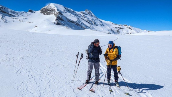 Toute la nuit, il vente et neige, et il faut attendre la fin de l’après-midi de mercredi pour que quelques éclaircies temporaires s’installent. C’est avec grand plaisir qu'au refuge nous rencontrons Yann, un guide que connaissent les adeptes du stage hors-piste de Tignes organisé par notre club.
