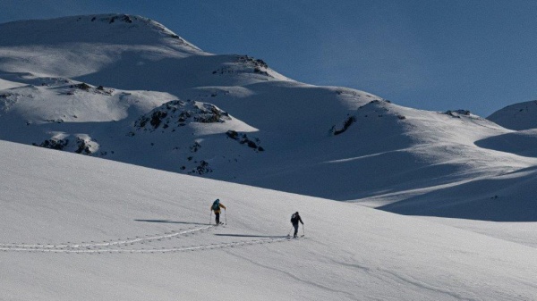 Nous suivons d’abord la trace vers la Sana puis traçons dans la neige fraîche un itinéraire, certes plus long pour le col, mais peu exposé. Le jeu des ombres et des lumières lorsque nous gravissons les pentes au-dessus du vallon de la Rocheure avant que le soleil ne soit trop haut, est absolument sublime. L’horaire est respecté, nous nous accordons une courte pause au col avant la descente dans la poudreuse tant méritée pour atteindre le vallon du Charvet qui nous est familier.