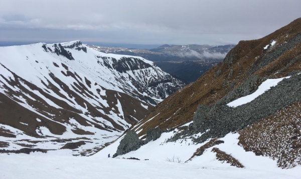 Après cet échauffement, on descend du côté du cirque de la Fontaine Salée. On constate avec plaisir que la neige n'est pas si mauvaise (quoique un peu mouillée sur la fin) et la pente plutôt douce. De quoi se dégourdir les jambes !