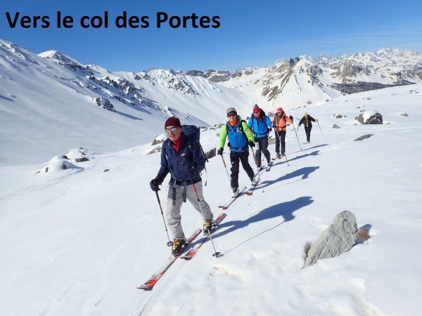 Le jour suivant nous conduira au le col des Portes, une des plus belles courses du secteur, (D+ 1200 m). La descente est un peu technique au départ, mais la neige excellente en fera la plus agréable du séjour.