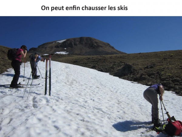 Montée skis aux pieds jusqu’en-dessous du col entre Perdrix et Ferrand.