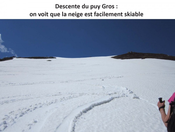 La descente est fabuleuse, car la neige est facilement skiable.