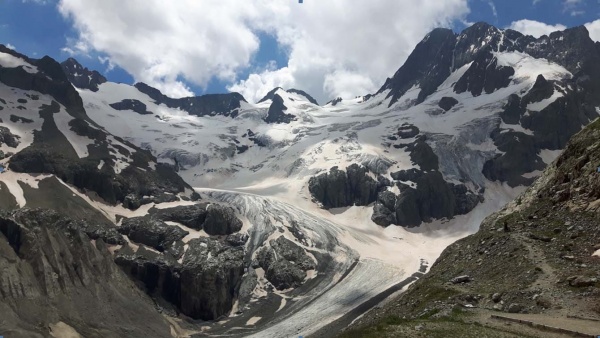 Après un petit pique-nique, nous commençons la montée au refuge de la Pilatte (2577 m). Nous nous enfonçons dans cette longue vallée le long du cours d’eau du Vénéon, puis nous terminons par une belle montée jusqu’au refuge ; une marmotte nous encourage. Arrivés vers 16 h, nous profitons du soleil et de la vue magnifique sur les glaciers pour nous reposer. Après le repas, nous repérons le chemin du lendemain.