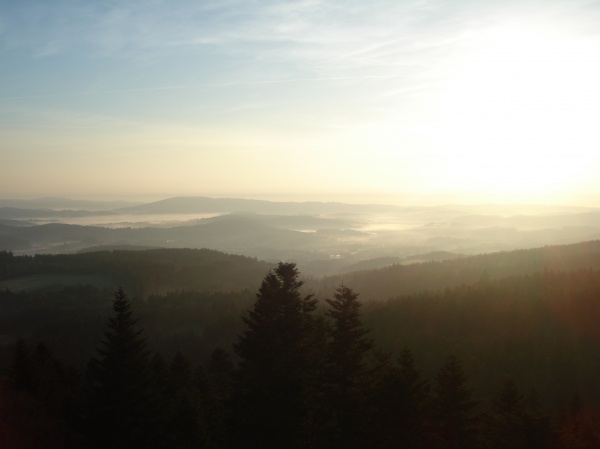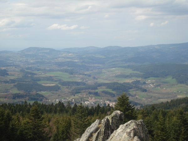 Samedi 16 avril – 7 h 15 : nous faisons fi du ciel menaçant qui nous accueille sur la place de la mairie de Thiers, point de départ de deux journées de randonnée. Pour admirer la vue qui s'offrira à nous du haut de l'ermitage, nous nous doutons que cette journée est celle d'une ascension régulière : la Vacherie (700 m), Ste Agathe (619 m), Rochemulet (800 m) que l'on atteint avec joie à 13 h pour un pique-nique dûment mérité.