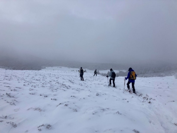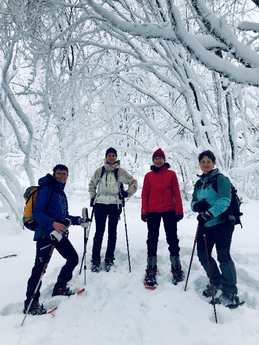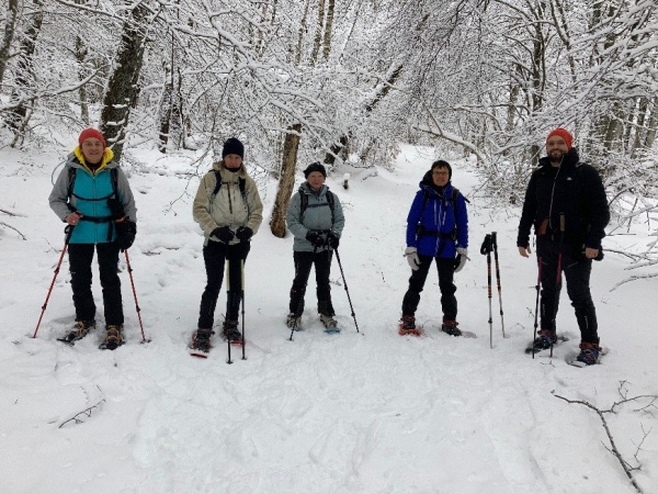 Sylvie et Sophie ont rejoint Marie-Odile, Christelle et Guillaume pour cette seconde journée à crapahuter sur les volcans en raquettes.