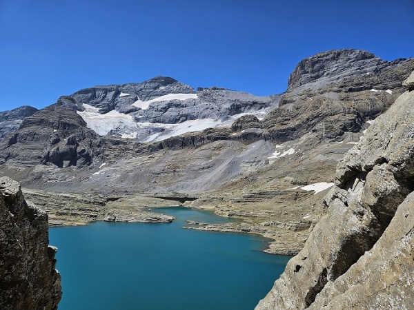 Vue sur le mont Perdu face Nord et le lac du Marboré depuis Tuquerouye