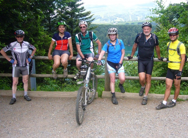 Pour l'édition 2016 du Tour du Sancy à VTT, nous sommes sept à nous retrouver le samedi 2 juillet à 9 heures sur le grand parking de Chambon-sur-Lac : Raoul, Didier, Fabienne, Marco, Claire, Brigitte et moi. Nous laissons nos affaires pour la nuit à Monique, l’épouse de Raoul, que nous retrouverons le soir.