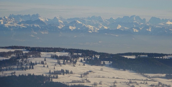 Dès 7 h le lendemain, après quelques courses pour le soir à l’épicerie du coin, un petit-déjeuner, servi à l’assiette par Léa, toujours aussi chaleureuse, nous attendait, de quoi affronter les -10° C matinaux ! Le parcours, sans difficulté, à travers forêts lumineuses toujours bien enneigées, nous a menés vers la Pisserette, cabane forestière à 1069 m d’altitude. Après une montée sous le soleil qui transformait la neige et bottait les peaux de phoques, nous sommes arrivés à « La Petite Echelle 1148 m », chalet étape à la frontière franco-suisse, où il y avait foule ! Après notre pique-nique en terrasse, la montée jusqu’au sommet du mont d’Or nous a offert un panorama splendide sur le mont Blanc et la chaîne des Alpes. La descente entre glace et cailloux sur les pistes de ski alpin de Métabief, a été laborieuse. Nous sommes arrivés sans dommage avant la tombée de la nuit au Chalet CAF du Gros Morond. Christian s’est transformé en chef cuisinier pour préparer un bon repas accompagné de deux bouteilles de blanc du Jura, achetées grâce à la gentillesse du gardien, pour fêter la fin de notre traversée.