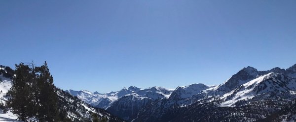 Samedi, c’est Cécile qui mène adroitement notre première randonnée dans le parc de Néouvielle, en direction du Pic de Bastan. Nous cheminons régulièrement au travers de territoires très sauvages où seules les traces d’animaux se distinguent dans la neige. Nous traversons de nombreux lacs recouverts de glace et de neige. Nous finissons de contourner le lac de Bastan et accédons à un magnifique panorama pour profiter du pique-nique. Après cette pause bien méritée, nous commençons notre redescente à travers la forêt et longeons le lac pour retourner au refuge après sept heures de marche et près de 14 km. Traditionnelle pause sur la terrasse, puis chacun vaque à ses occupations en attendant le dîner et le briefing.