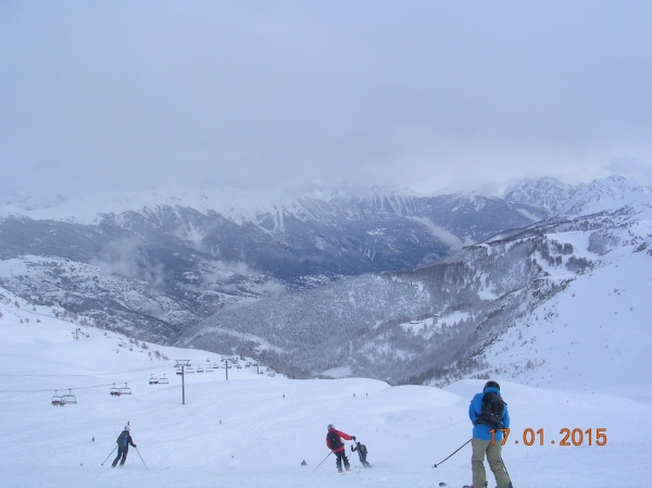 Le samedi matin, le brouillard et le risque d’avalanche coté 4 contraignaient les responsables du secteur de la Grave à prendre la terrible décision de ne pas « ouvrir » le téléphérique. Après un essai infructueux au Chazelet, nous nous sommes orientés vers Serre Che. Le week-end devenait alors plus conforme aux prédictions de notre organisateur. Un des participants a été privé de pause casse-croûte pour avoir perdu le groupe à un instant crucial, mais la journée s’est déroulée sous le soleil, sur la powo et avec peu de monde. Le finish, découvert, fut le passage d’une brèche courte mais raide pour laquelle l’entraide fut nécessaire. Bouquet final, le télésiège permettant le retour aux véhicules a dû être remis en route à notre arrivée, après une efficace négociation entre Nathalie et le conducteur de la remontée ; sinon, un long portage aurait été nécessaire.
