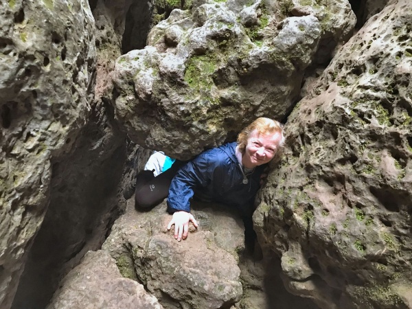 Notre journée de dimanche est très variée avec un premier périple en forêt à la recherche des failles de Canalettes (près de l’Hospitalet-du-Larzac). Les plus téméraires les traversent, voire même s’essayent à la spéléologie (sujet plutôt maîtrisé par certains membres du groupe).