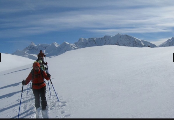 La montée très progressive vers la frontière italienne sera un enchantement... le cadre de cette vallée large dominée par la Tête des Toilies est fort propice à la pratique de la randonnée nordique, cette première journée sera l'occasion pour le groupe de réviser quelques techniques de descente, chaussage des peaux, ...