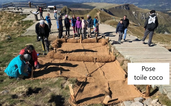- nous égaliserons le sol dans les zones dégradées et nous poserons de la toile coco pour assurer la reprise de la végétation